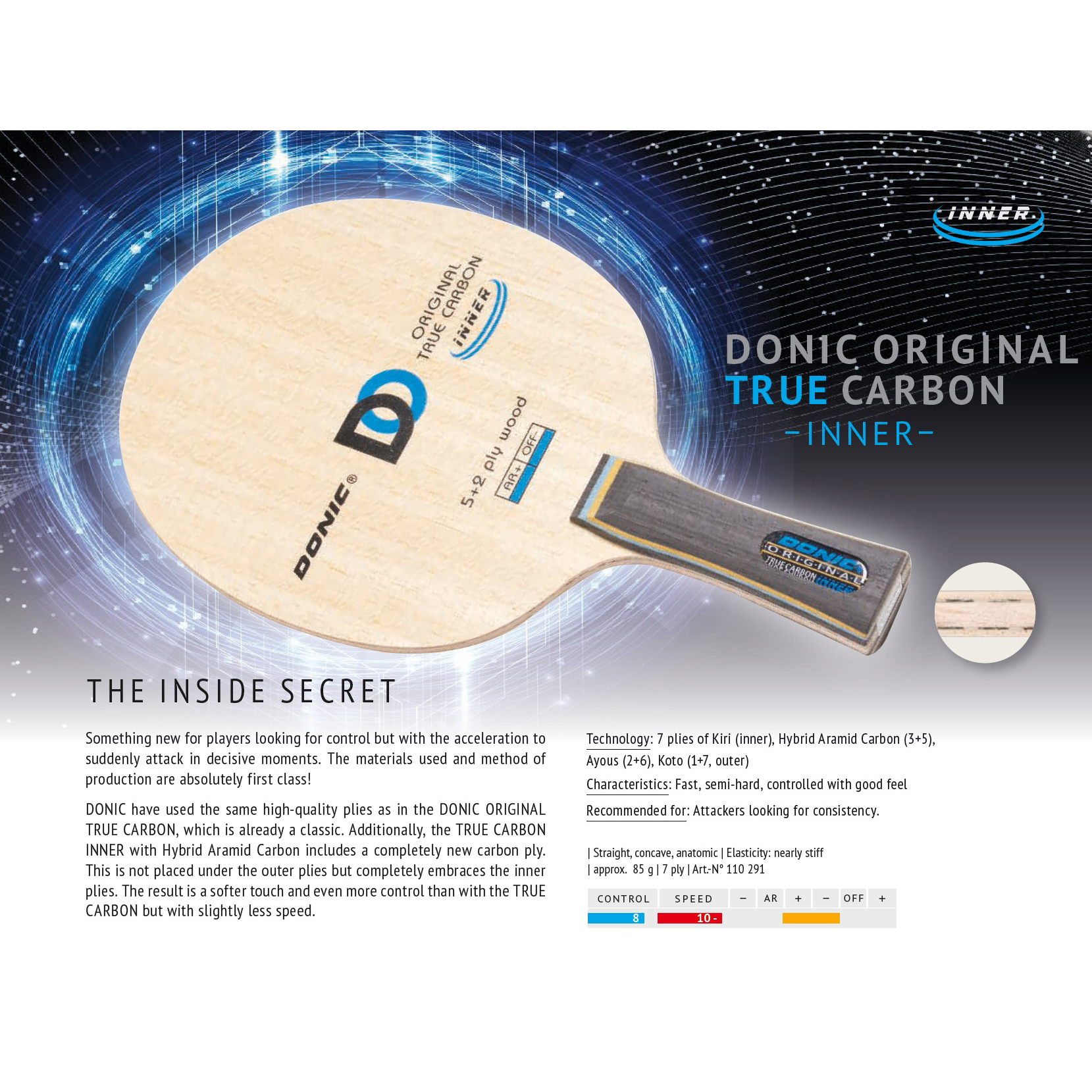 Madera DONIC TRUE CARBON INNER (FL)